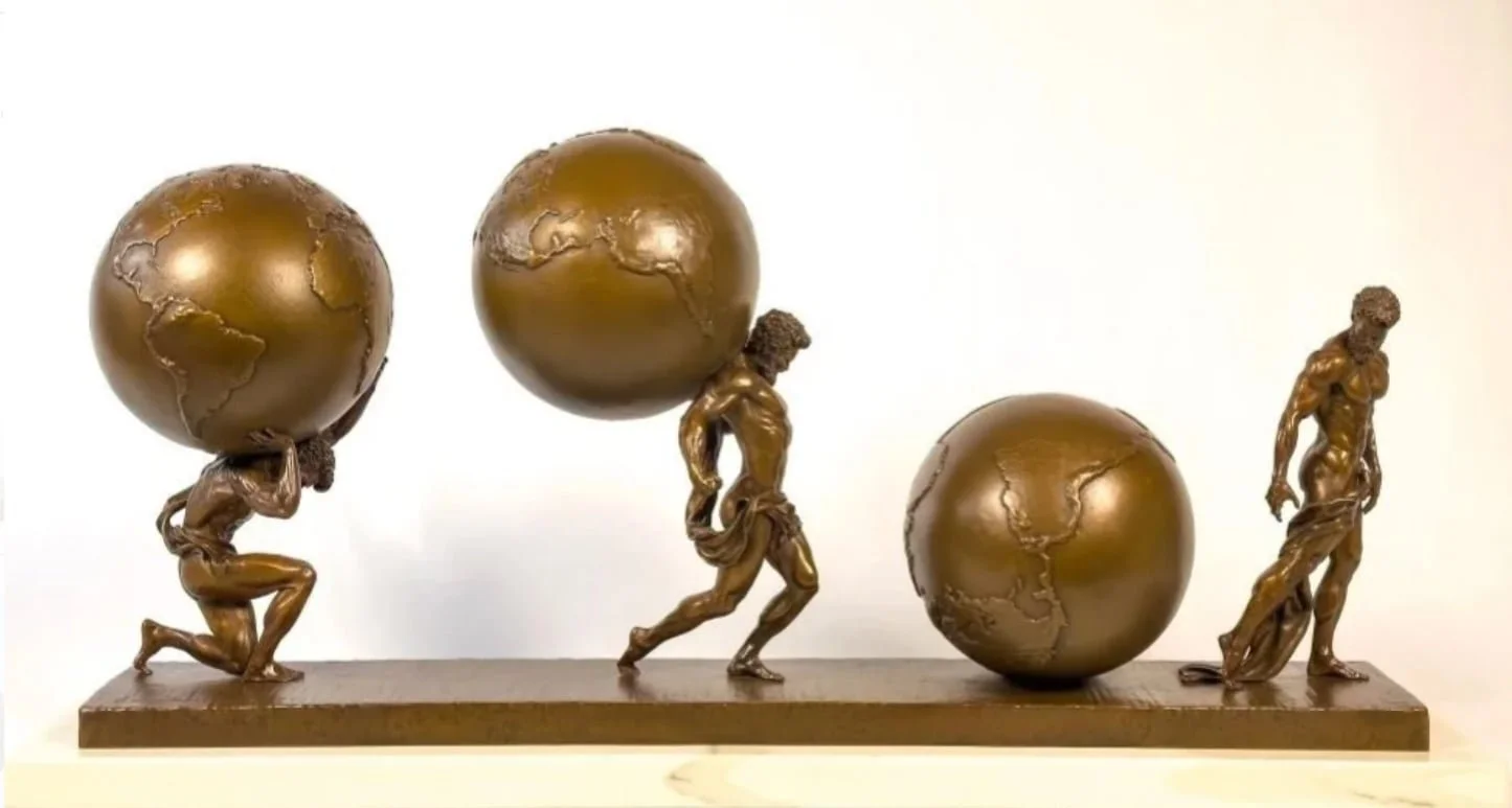 "Atlas in Motion Trio," 14" tall bronze casting, Eric Wilson. Available at Quent Cordair Fine Art.